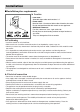 Installation ■ Installation place requirements Location Washer approx. 2cm • Level floor : Allowable slope under entire washer is 1˚ • Power outlet : Must be within 1.5 meters of either side of location of washer. Do not overload the outlet with more than one appliance. • Additional Clearance : For Wall, 10cm:rear / 2cm : right & left side Do not place or store laundry products on top of washer at any times. They can damage the finish or controls.