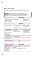Safety Instructions Power WARNING Do not use too many plugs on the Mains multi-outlet. It may result in overheating of the outlet and causes a fire hazard ! Power Never touch the power plug with a wet hand This may cause an electric shock hazard ! NOTES Hold the plug firmly when unplugging. If you pull the cord, it may be damaged. Prevent dust collecting on the power plug pins or outlet.