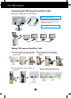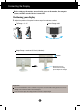 Connecting the Display Disassembling the stand 1. Put a cushion or soft cloth on aflat 2. Place the monitor face Down on surface. the cushion or soft cloth. 3. Pushing Latch inside, Take the stand base from stand body. Important This illustration depicts the general model of connection. Your monitor may differ from the items shown in the picture. Do not carry the product upside down holding only the stand base. The product may fall and get damaged or injure your foot.