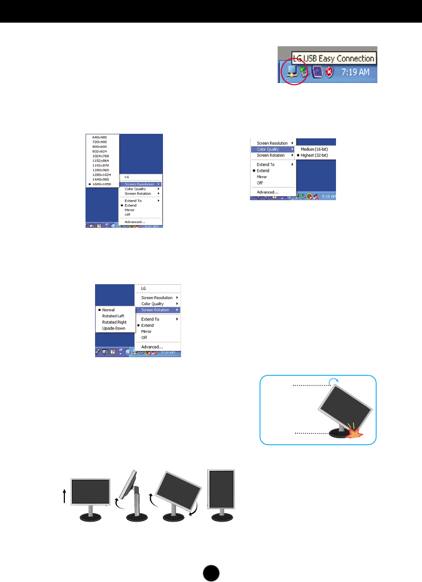 Når du roterer skjermen, må du være forsiktig med de tilkoblede