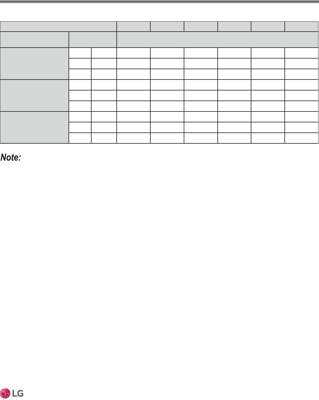 To get the desired air flow and external static pressure combination, use the setting value from the table. Using a setting value other