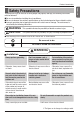 Safety Precautions ENGLISH CAUTION n Installation Install the drain hose to ensure that drain can be securely done. • Otherwise, it may cause water leakage. Always inspect gas leakage after the installation and repair of product. • Otherwise, it may cause the failure of product. Install the product so that the noise or hot wind from the outdoor unit may not cause any damage to the neighbors. • Otherwise, it may cause dispute with the neighbors. Keep level parallel in installing the product.