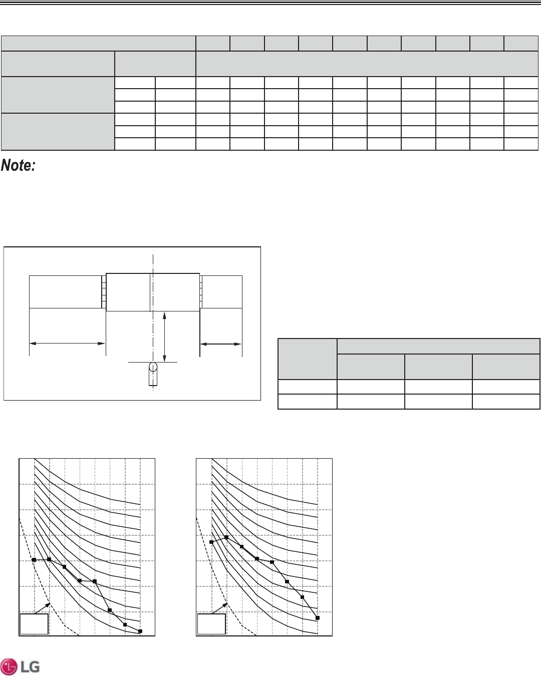 • To get the desired air flow and external static pressure combination, use the setting value from the table. Using a setting value other