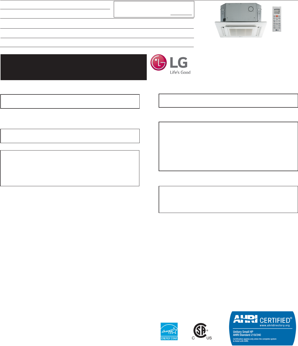 © LG Electronics U.S.A., Inc., Englewood Clis, NJ. All rights reserved. “LG Life’s Good” is a registered trademark of LG Corp. /www.lghvac.com