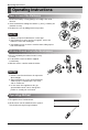 Instrucciones de funcionamiento Instrucciones de funcionamiento Inserción de pilas 1. Desmonte la tapa de la batería tirando de ella en la dirección de la flecha. 2. Inserte las nuevas pilas asegurándose de que los signos (+) y (-) de la pila están instalados correctamente. 3. Monte de nuevo la tapa deslizándola nuevamente en posición. NOTA 1. Utilice/Sustituya siempre ambas pilas por otras del mismo tipo. 2.