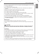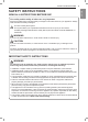 SAFETY INSTRUCTIONS Installation •• Do not install the air conditioner on an unstable surface or in a place where there is danger of it falling. •• Contact an authorized service center when installing or relocating the air conditioner. •• Install the panel and the cover of the control box safely. •• Do not install the air conditioner in a place where flammable liquids or gases such as gasoline, propane, paint thinner, etc., are stored.