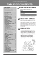 Safety Precautions Safety Precautions This symbol indicates the possibility of death or serious injury. This symbol indicates the possibility of injury or damage. ■ Meanings of symbols used in this manual are as shown below. Be sure not to do. Be sure to follow the instruction. Always use a power plug and socket with a ground terminal. • There is a risk of electric shock. For electrical work, contact the dealer, seller, a qualified electrician, or an Authorized Service Center.