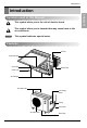Installation Installation Map ENGLISH NOTICE Installation parts you should purchase. More than 7.9"(20cm) 3.9"(10cm) More than 19.6"(50cm) (Left and right are identical) Sleeve Bushing-Sleeve Putty(Gum Type Sealer) Bend the pipe as close as possible on the wall but be careful so that it may not break. Vinyl tape (Wide) Saddle • To carry out the drainage test, remove the air filter and pour water into the heat exchanger. • Apply after carrying out a drainage test. More than 23.
