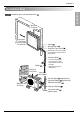 Preparing the indoor unit's piping and drain hose for installation through the wall.
