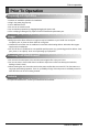 Prior to operation Prior To Operation Preparing For Operation Usage 1. Being exposed to direct airflow for a long time may be hazardous to your health. Do not expose occupants, pets, or plants to direct airflow for a long time. 2. Ventilate the room when the air conditioner is used with other heating devices. Otherwise the oxygen supply may be inadequate. 3. Do not use this air conditioner for non-specified special purpose (e.g. preserving precision devices, food, pets, plants, or art objects).