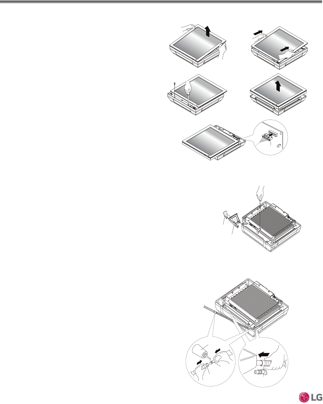2. Remove the cover from the side of the indoor unit chosen for the piping connections,