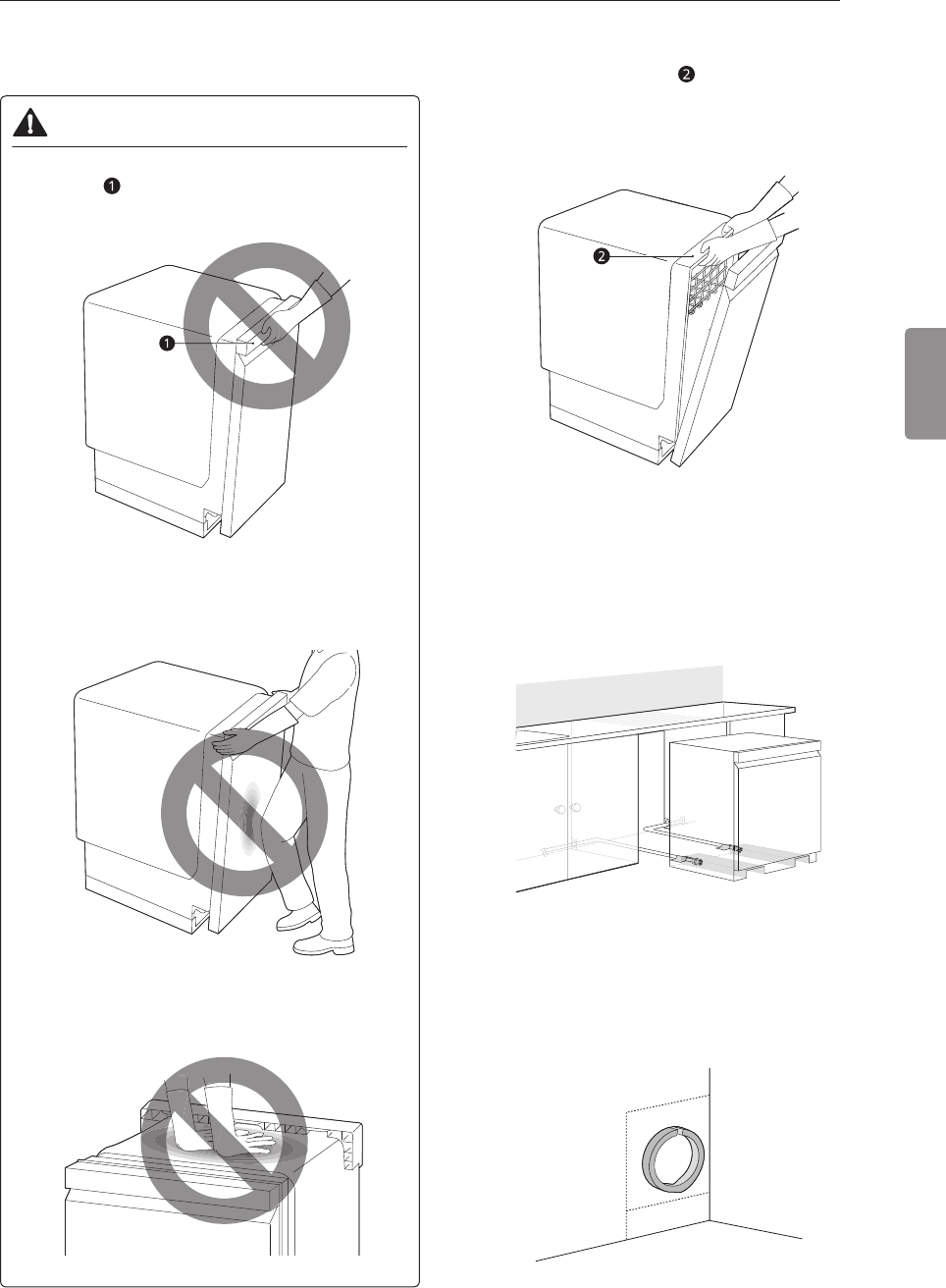 - Positionnement du lave-vaisselle dans l’ouverture de lʼarmoire