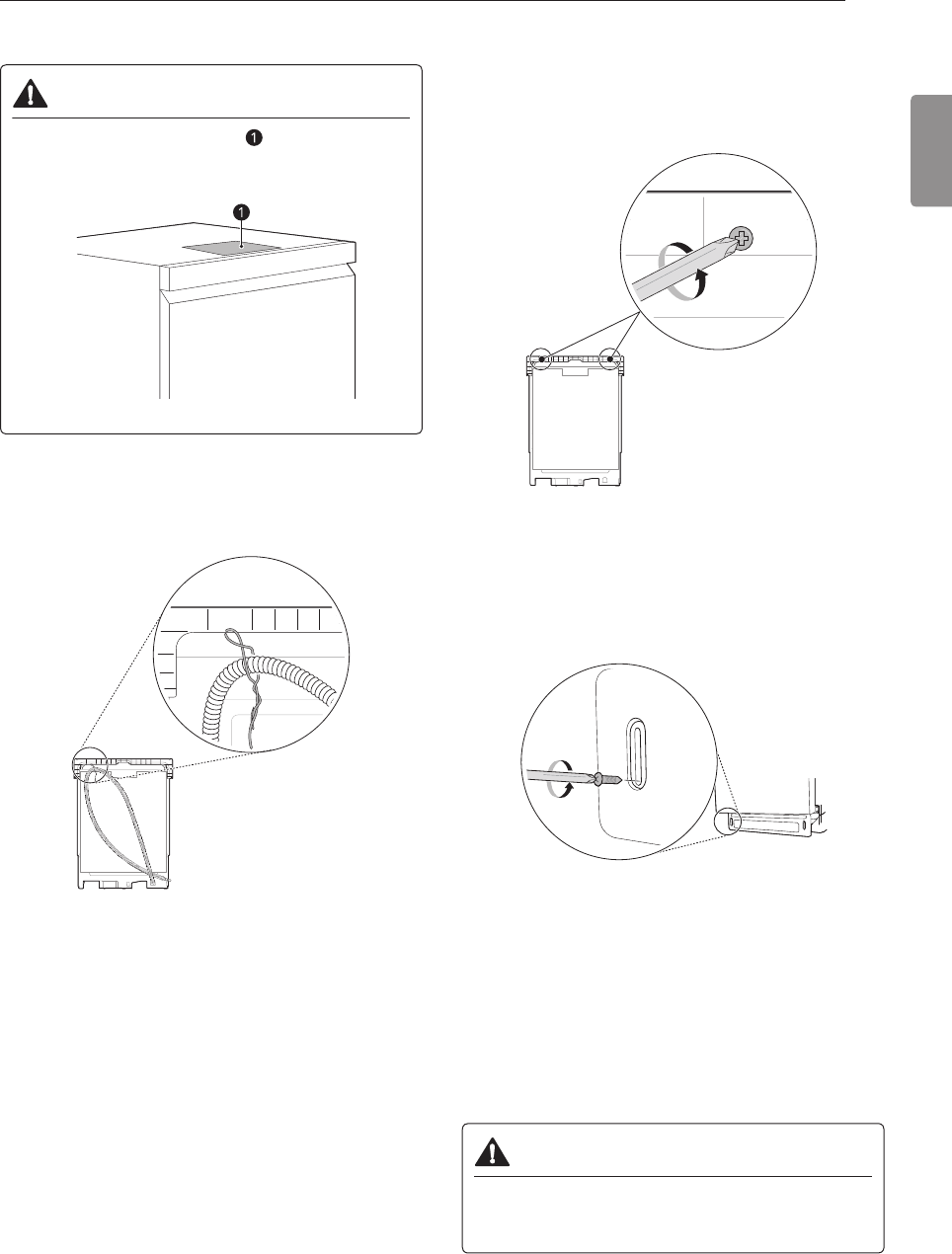 - Fixation du lave-vaisselle à l’ouverture de lʼarmoire