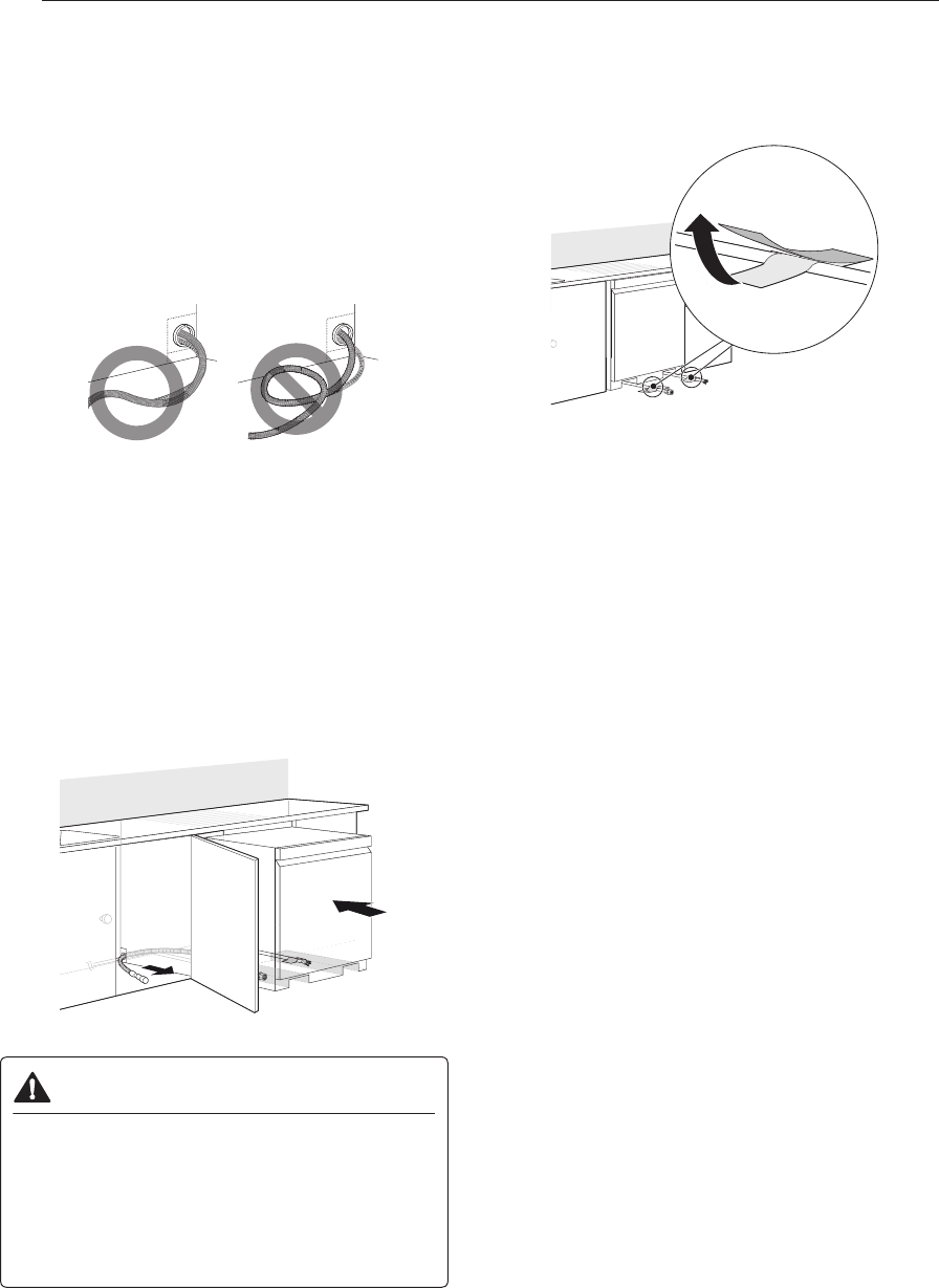- Positionnement du lave-vaisselle dans l’ouverture de lʼarmoire