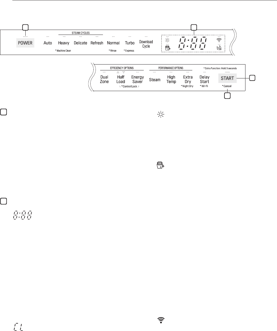 - This icon illuminates when the rinse aid level is
