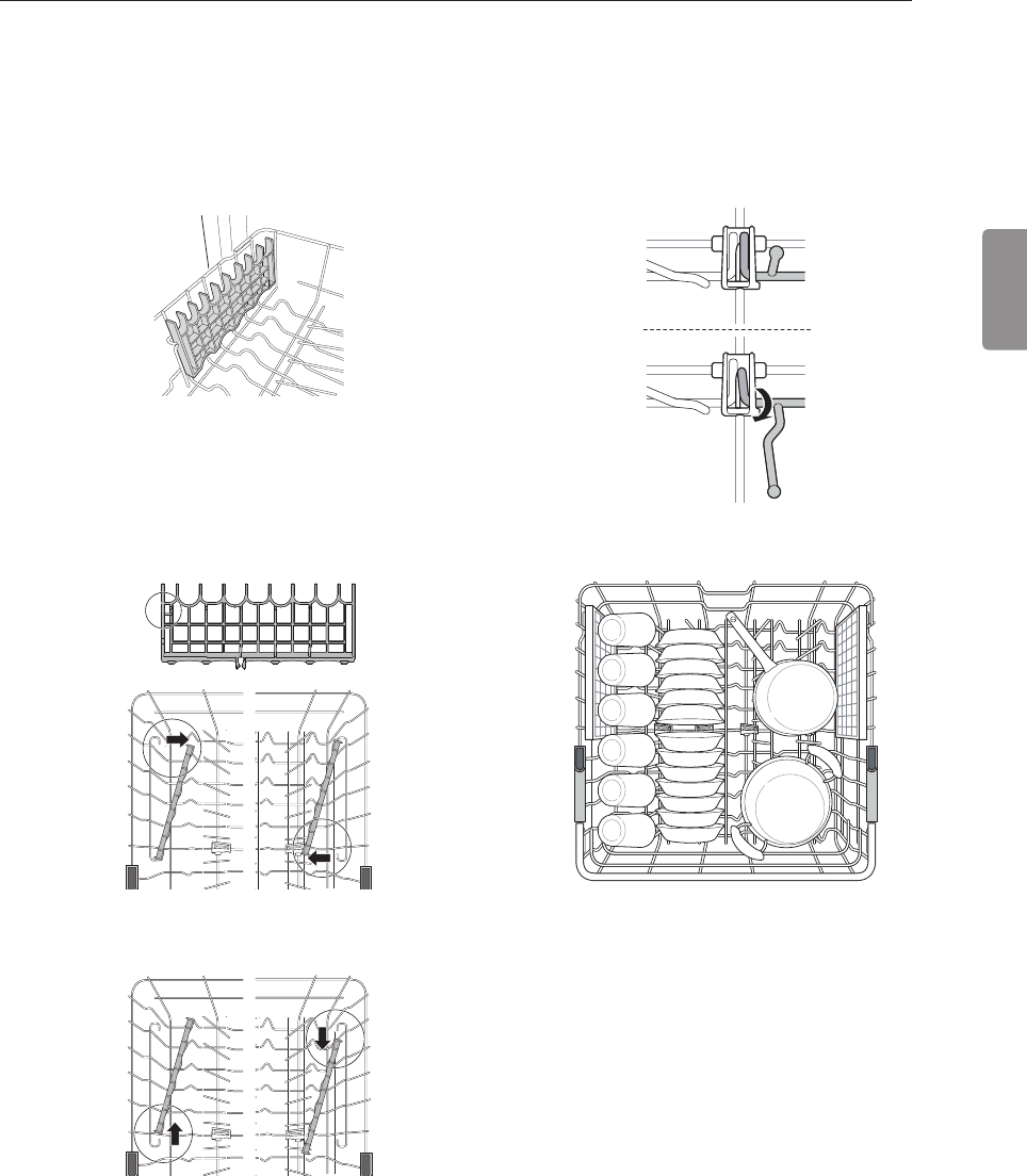 separadoras hacia arriba para acomodar la vajilla más