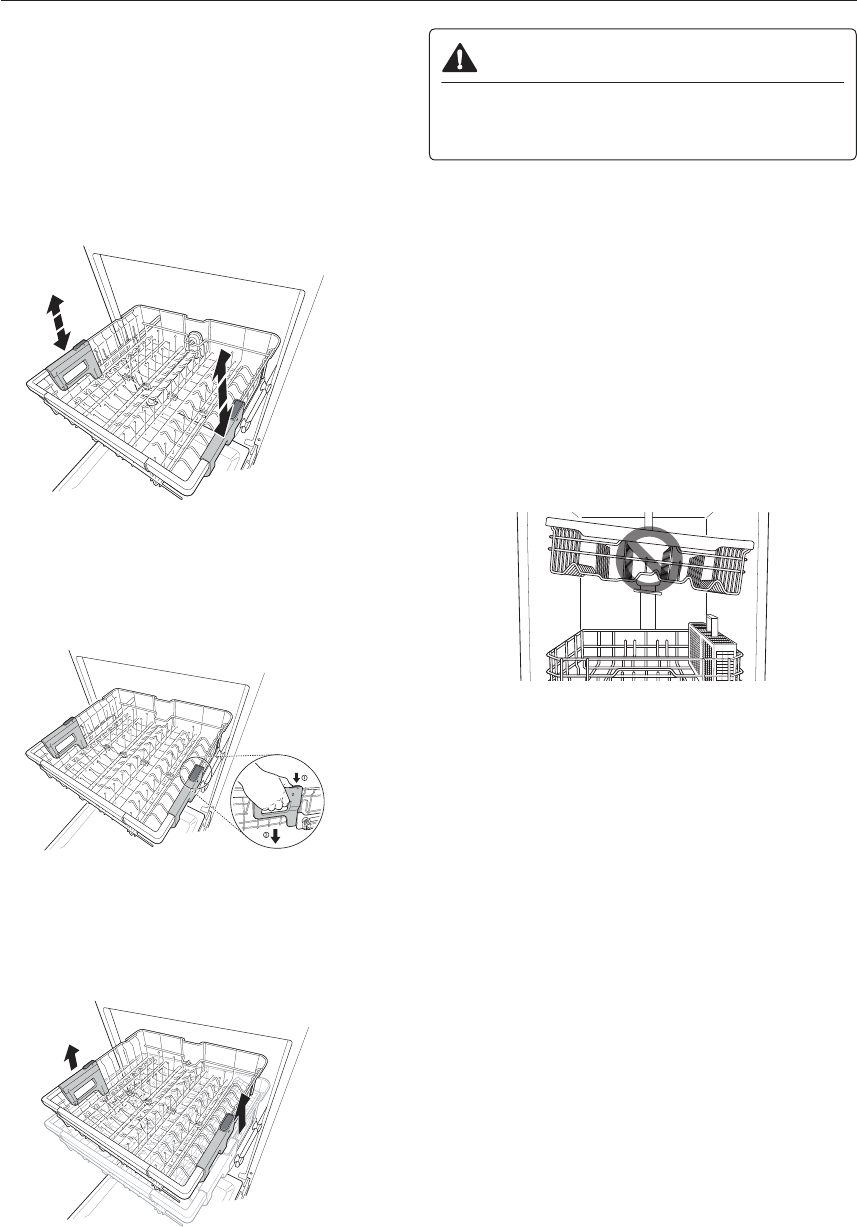• Antes de empujar la bandeja superior en el lavavajillas,