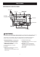 FEATURES MICROWAVE OVEN FEATURES Door Handle Model and Serial Number Plate Metal Rack Vent Grille Door Safety Lock System Control Panel Cooking Guide Window with Metal Shield Glass Tray Cooktop/Countertop Light Grease Filter WARNING: Do not operate the oven when empty or without the glass tray. It is best to leave a glass of water in the oven when not in use. The water will safely absorb all microwave energy, if the oven is accidentally started.