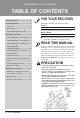 Climatiseur de plafond de Manuel de l’usager TABLE DES MATIÈRES Mesures de sécurité......................................3 À CONSERVER Introduction au produit.................................6 Écrivez ici les numéros de série et le modèle Unité intérieure.............................................6 Unité extérieure............................................6 Simple Bo tier de Contr le filaire...................7 Instructions d’opération ...............................