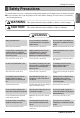 Safety Precautions Do not use the product for special purposes, such as preserving foods, works of art, etc. It is a consumer air conditioner, not a precision refrigeration system. Do not touch the metal parts of the product when removing the air filter. • There is risk of personal injury. Do not insert hands or other objects through the air inlet or outlet while the product is operating. • There are sharp and moving parts that could cause personal injury.