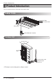 Mesures de sécurité Ne pas bloquer le flux d’air d’entrée ou de sortie. Utiliser un chiffon doux pour le nettoyage. N’utiliser ni détergents durs, ni solvants ni projections d’eau etc. • Cela pourrait provoquer des pannes. • Risque d’incendie, de décharge électrique ou de détérioration des parties en plastique de l’appareil. Ne pas toucher les parties métalliques de l’appareil quand vous enlevez le filtre à air. Ne pas monter sur l’appareil et ne rien poser dessus.