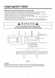 YOUR SAFETY • MAKE SURE YOU HAVE ENOUGH FIRST SPACE AND SUPPORT. - Mount the oven against a flat, vertical wall, so that it is supported by the wall. The wall should be constructed of minimum 2" x 4" wood studding and 3/8" thick drywall or plaster/lath. - ATTACH AT LEAST ONE of the two lag screws supporting the oven to a vertical, 2" x 4" wall stud. - DO NOT mount the microwave oven to an island or peninsula cabinet. - BE SURE the upper cabinet and rear wall structures are able to support 150 Ibs.
