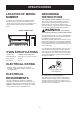 SPECIFICATIONS LOCATION OF MODEL NUMBER GROUNDING INSTRUCTIONS To request service information or replacement parts, the service center will require the complete model number of your microwave oven. The number is on the inside of the door frame as shown in the illustration below. This appliance must be grounded. If an electrical short circuit occurs, grounding reduces the risk of electric shock by providing an escape wire for the electric current.