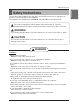 Safety Instructions The following safety guidelines are intended to prevent unforeseen risks or damage from unsafe or incorrect operation of the appliance. The guidelines are separated into ‘WARNING’ and ‘CAUTION’ as described below. ! This symbol is displayed to indicate matters and operations that can cause risk. Read the part with this symbol carefully and follow the instructions in order to avoid risk.