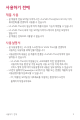 강화유리 재질에 대한 안내 • 본 제품의 강화유리 재질은 영구적인 것이 아니며 일반적으로 시간이 지나면서 미세한 마모가 발생할 수 있습니다. -- 제품을 단단한 표면 위에 떨어뜨리거나 강한 충격을 주면 강화유리가 깨지거나 손상되어 상해의 위험이 있습니다. 이 경우 즉시 제품 사용을 중지하고 가까운 LG전자 서비스 센터에 방문하여 수리하세요. LG Mobile 친환경 프로젝트(폐제품) • LG전자 서비스 센터에서는 폐제품을 수거하여 안전하게 폐기하고 있습니다. 제품 폐기 시 LG전자 서비스 센터로 문의하세요. 제품 사용 온도 • 제품은 0 ℃ ~ 35 ℃ 사이에서 보관하거나 사용하세요. • 너무 낮거나 너무 높은 온도에서 사용 및 보관할 경우 제품 파손과 오류, 또는 폭발 등의 위험이 있습니다. 상표권 • Copyright ⓒ 2019 LG Electronics. Inc. All Rights Reserved. 사용설명서의 내용은 LG전자의 저작권을 준수합니다.