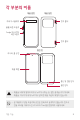 각 부분의 이름 제품 앞면 제품 뒷면 커버 디스플레이 힌지 홀더 볼륨 버튼 도움키 Google 어시스턴트 버튼 도움키 힌지 홀더 펼친 면 리시버 홀 공간 제품 화면 통신 및 전원 단자 충전 단자 • 제품을 바닥에 떨어뜨리거나 누르거나 휘는 등 강한 충격을 주지 마세요. 제품을 지나치게 세게 누르거나 닫으면 제품 파손의 위험이 있습니다. • 본 제품에 구성된 도움키와 공간은 단독으로 동작하지 않습니다. 반드시 전용 모바일 디바이스인 LG V50S ThinQ를 연결하여 사용하세요.