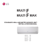 MULTI F MULTI F MAX INTRODUCTION Multi F and Multi F MAX Standard Wall-Mounted Units This manual describes how to install the LG Multi F and Multi F MAX (Multi Zone) Standard Wall-Mounted Indoor Units (IDU) for Multi F heat pump systems. Table 1 lists the available models. Refer to LG’s Multi F Indoor Unit Engineering Manual for complete detailed engineering data and selection procedures.