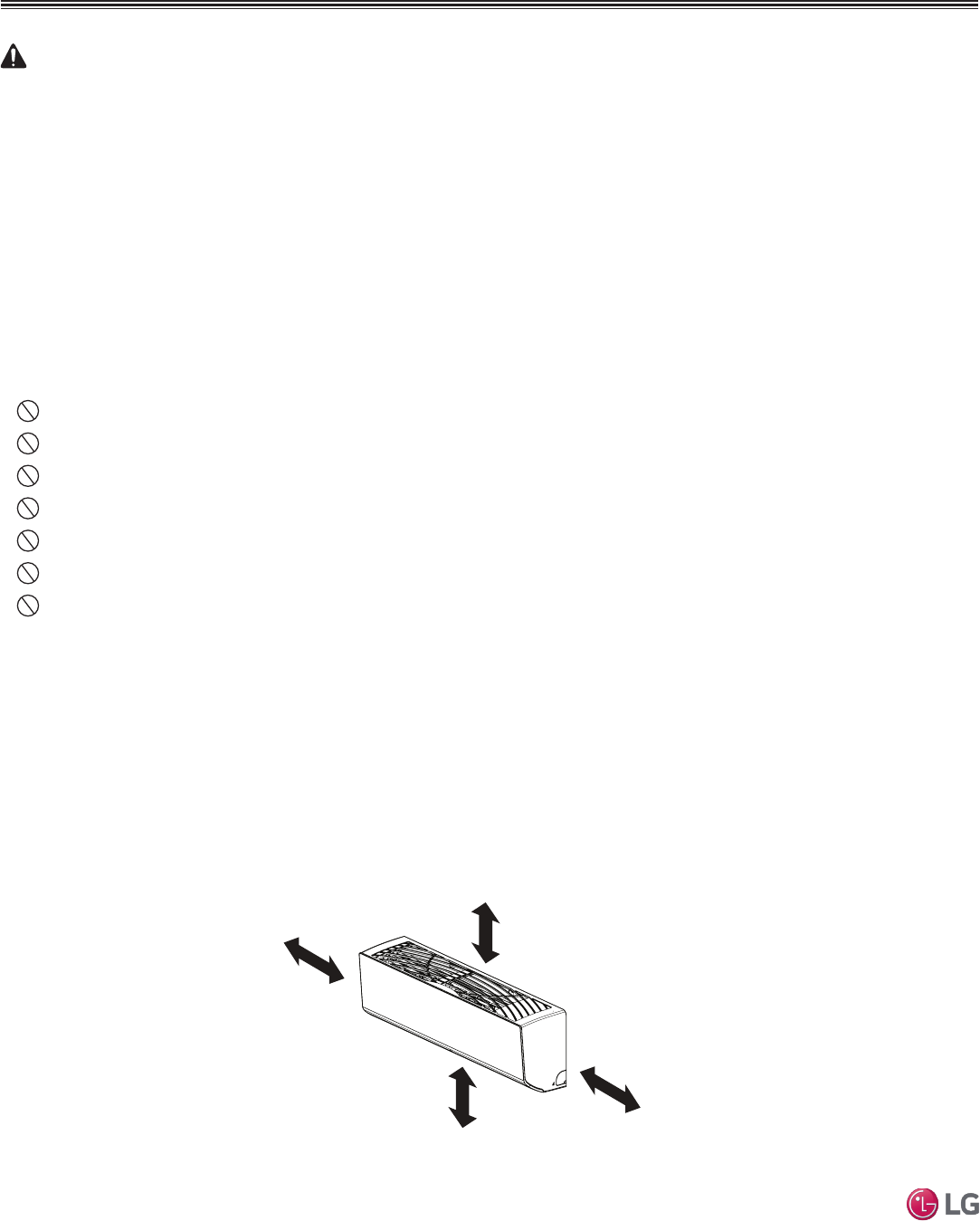 To avoid the possibility of re, do not install the unit in an area where combustible gas may generate, ow, stagnate, or leak. Failure to do so will