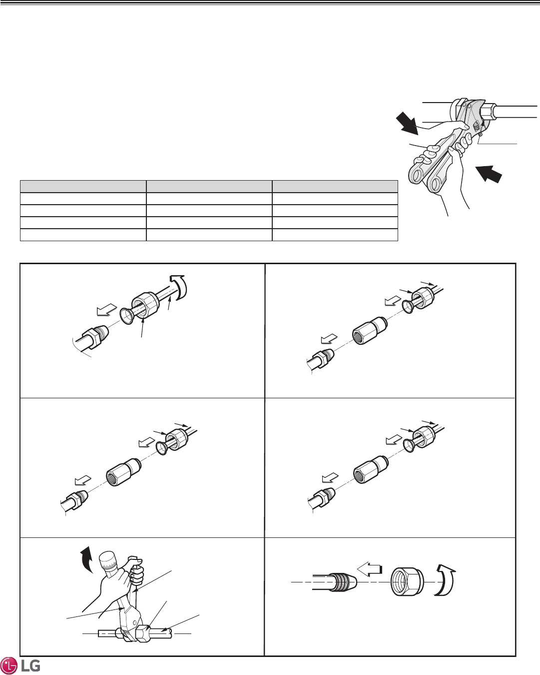 2. Align the center of the piping sections and tighten the flare nut by hand.