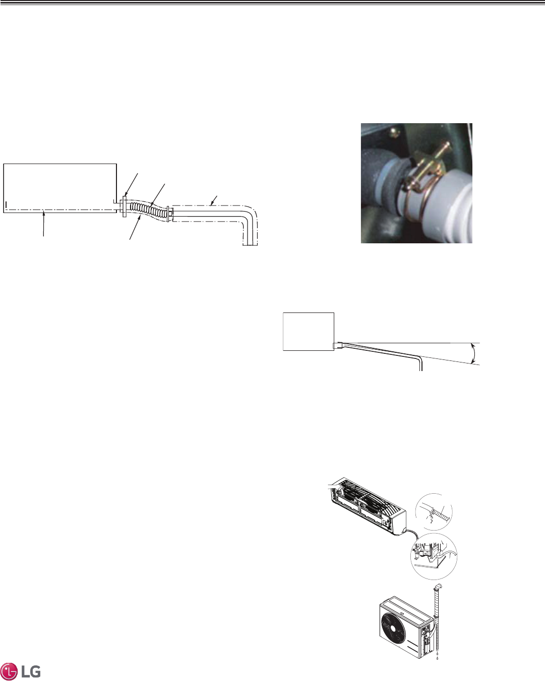 flexible pipe connects to field-provided drain pipe. Use materials that comply with local codes for drain pipe and insulation.
