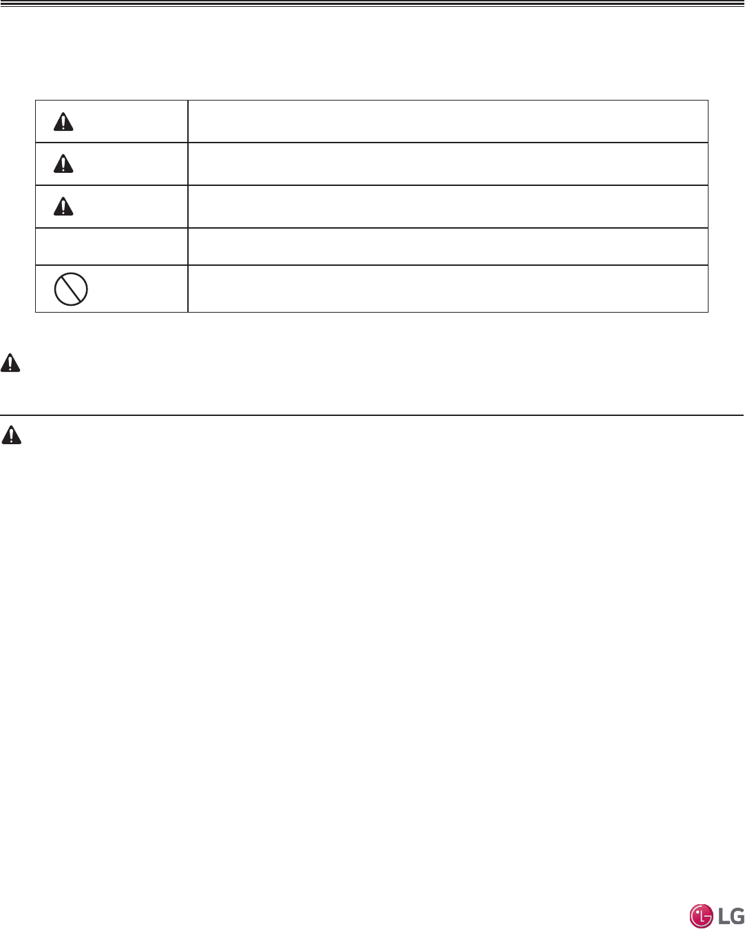 specied by LG are used, there is risk of re, electric shock, explosion,