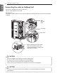 WIRING CONNECTION ENGLISH Connecting the cable to Outdoor Unit - Remove the side panel for wiring connection. - Use the cord clamp to fix the cord. - Earthing work Connect the cable of diameter more to the earthing terminal provided in the control box and do earthing. Main Terminal Block Cord clamp Cord clamp Insulation When connecting main power cable, make sure the rubber bushes are properly used in knock-out holes after removing the Insulation.