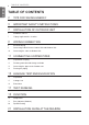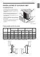 TABLE OF CONTENTS ENGLISH TABLE OF CONTENTS 2 TIPS FOR SAVING ENERGY 3 IMPORTANT SAFETY INSTRUCTIONS 7 INSTALLATION OF OUTDOOR UNIT 7 Installation Places 7 Piping length and the elevation 8 WIRING CONNECTION 8 Electrical Wiring 8 Connecting Cables between Indoor Unit and Outdoor Unit 10 Connecting the cable to Outdoor Unit 11 CONNECTING COPPER PIPES 11 Preparation of Piping 12 Plumbing materials and storage methods 13 Connecting the pipes to the Outdoor unit 14 Forming the pipi