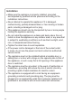 Installation ••Make sure the appliance is properly installed, grounded, and adjusted by qualified service personnel according to the installation instructions. ••Never attempt to operate this appliance if it is damaged, malfunctioning, partially disassembled, or has missing or broken parts, including a damaged cord or plug. ••This appliance should only be transported by two or more people holding the appliance securely. ••Do not install the appliance in a damp and dusty place.
