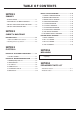 TABLE OF CONTENTS SECTION 1 SUMMARY • SPECIFICATIONS ......................................................1-1 • LOCATION OF CUSTOMER CONTROLS .................1-2 • CRITICAL PARTS REPLACING TIME TABLE...........1-5 • CRITICAL PARTS DESCRIPTION .............................1-5 SECTION 2 CABINET & MAIN FRAME EXPLODED VIEWS........................................................2-1 1. Cabinet and Main Frame Section ............................2-1 2. Packing & Accessory Section ...............................