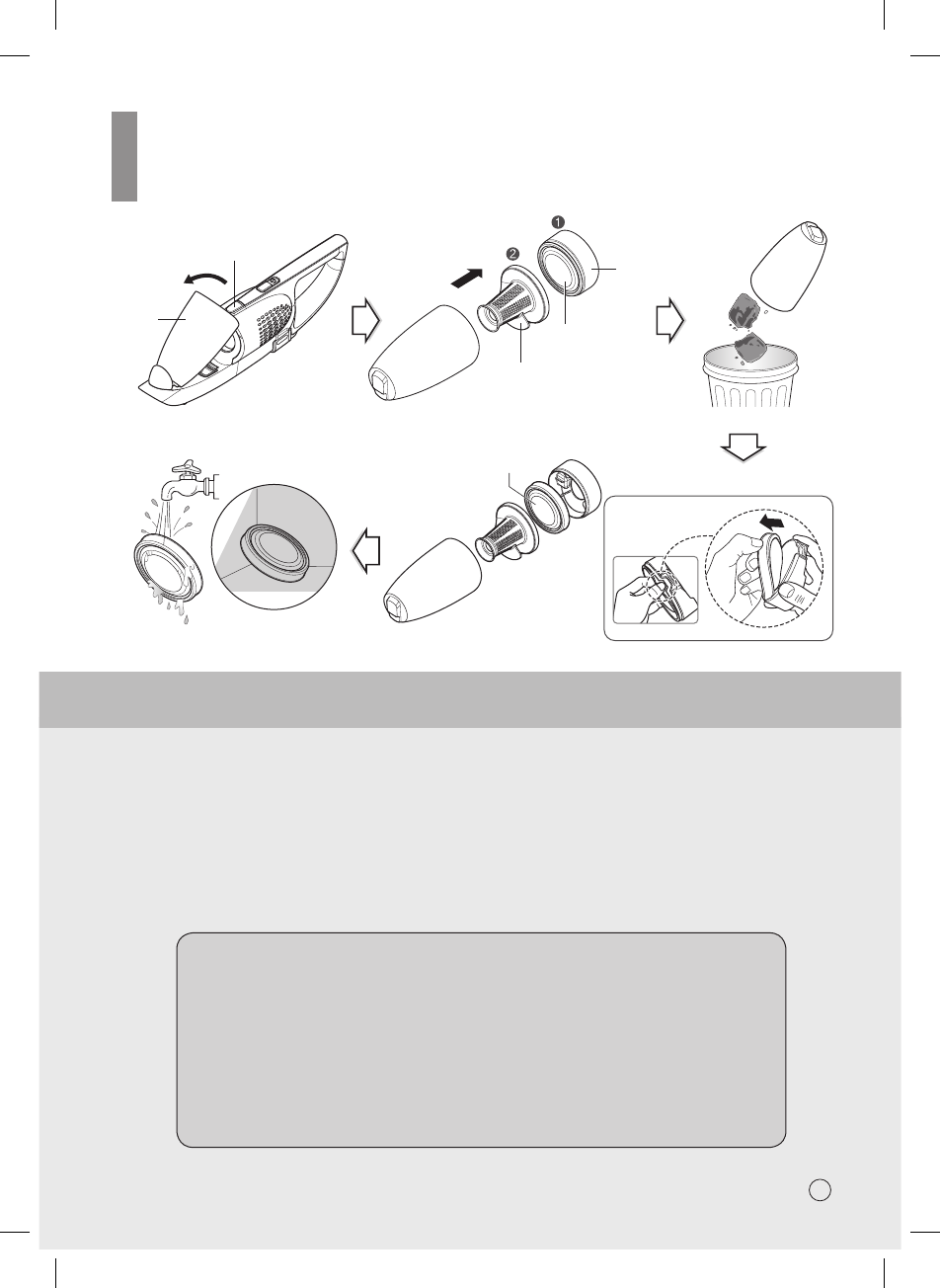 • After cleaning the dust separator, be sure to put it back into the dust bin.