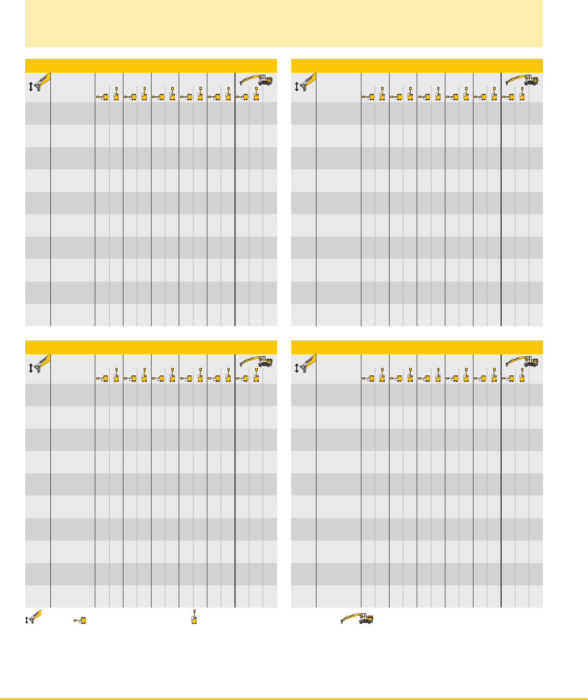 with blocked oscillating axle. These capacities can be slewed through 360° with the undercarriage in the transverse position. Capacities in the longitudinal position of