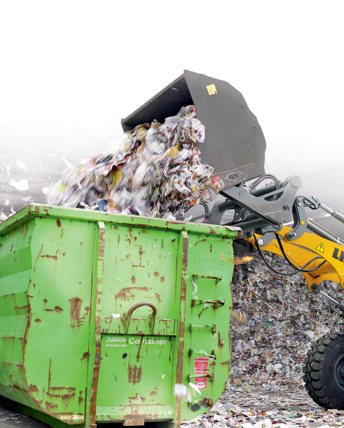The powerful Liebherr wheel loaders L 507 Stereo - L 580 are employed in land filling at recycling plants and in direct
