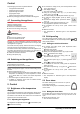 Decommissioning WARNING Risk of injury due to electric shock! Live parts are located under the cover. u Have the LED interior light changed or repaired only by the customer service or by specialized personnel trained for the purpose. WARNING Danger of injury by LED lamp! The light intensity of the LED illumination corresponds to laser class 1/1M. If the cover is defective: u Do not look into the illumination with optical lenses from the immediate proximity. This can cause injury to the eyes.