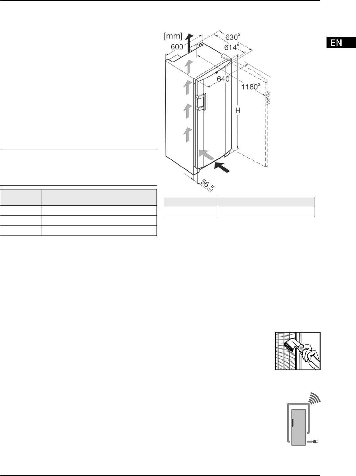 Model Appliance height H (mm)