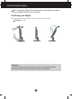 Connecting the Display Before setting up the monitor, ensure that the power to the monitor, the computer system, and other attached devices is turned off. Positioning your display 1. Adjust the position of the panel in various ways for maximum comfort. Tilt Range: -5˚~20˚ Ergonomic It is recommended that in order to maintain an ergonomic and comfortable viewing position, the forward tilt angle of the monitor should not exceed 5 degrees.