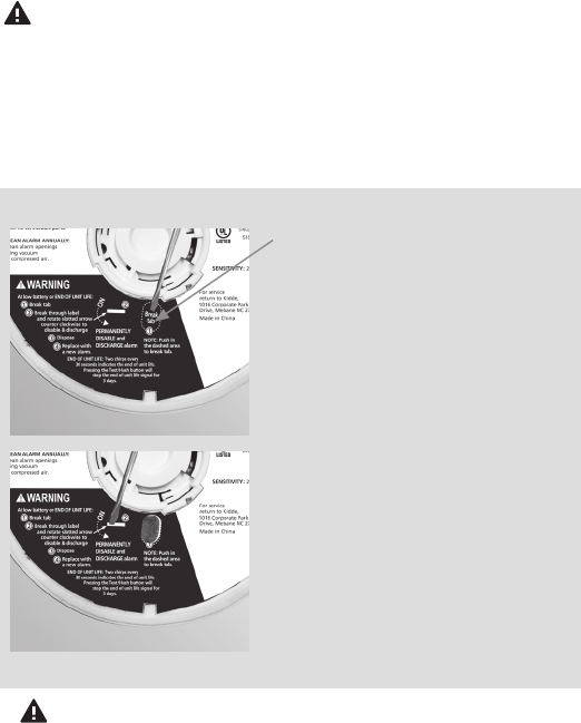 • Once discharged , the alarm will NO LONGER DETECT SMOKE.