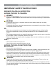 SAFETY INFORMATION IMPORTANT SAFETY INSTRUCTIONS READ AND FOLLOW ALL INSTRUCTIONS AVOIDING THE RISK TO CHILDREN DANGER: • RISK OF CHILD DROWNING. Extreme caution must be exercised to prevent unauthorized access by children. To avoid accidents, ensure that children cannot use a spa unless they are supervised at all times. WARNING: • To reduce the risk of injury, do not permit children to use this product unless they are closely supervised at all times.