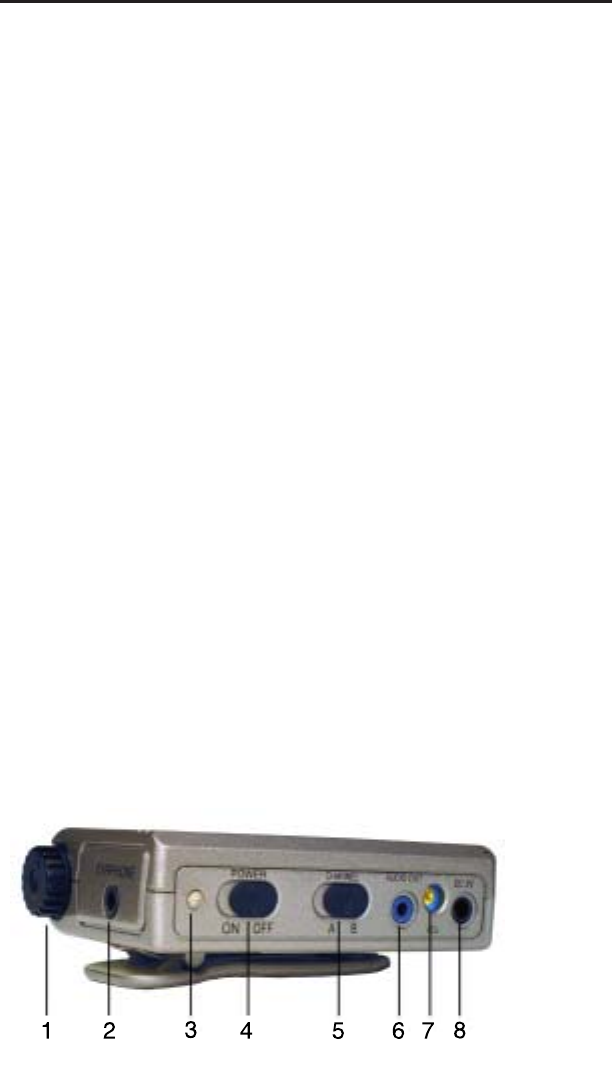 8. DC 3V CHARGING JACK: This jack is used to recharge the