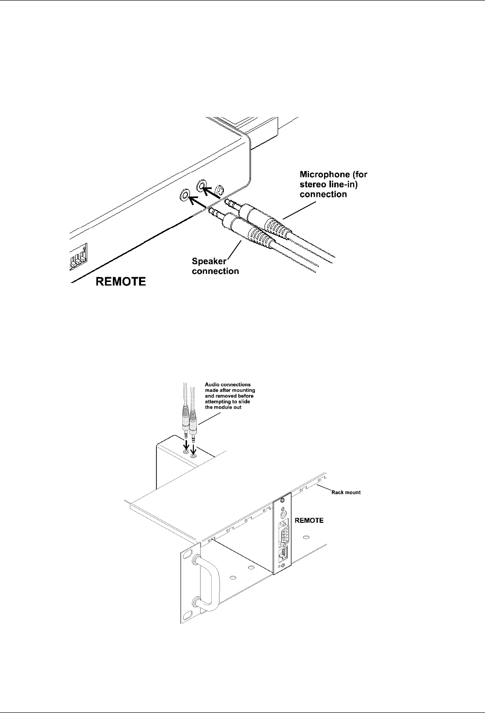 Note: When the REMOTE module is rack mounted, the audio connections must be made