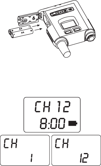 OFF/ON switch to the On position; the display will show the currently selected channel and